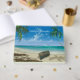 Blue Tropical Ocean Beach Boat Palm Trees Hochzeit Gästebuch