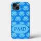 Blue Turquoise Modern Damask Monogram Custom Case-Mate iPhone Hülle