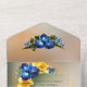 Elegante Hochzeit dreifach gefaltet alles in einer Einladung in einer goldenen Tonfarbe getan. Ein gerahmter Bereich für den benutzerdefinierten Text ist mit hübschen Grafiken von blauen und gelben Iris-Blume umgeben. Die passenden Hochzeitsprodukte stehen zur Verfügung.