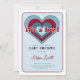 Adorable valentiner Babydusche Einladung mit roten und blauen Herzen.