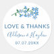 Floral danke Ihnen Aufkleber für Ihre Hochzeit in Weiß mit einem Zweig vergessener Noten und charmanten blauen Schriftart. Geben Sie Ihre Namen und das Hochzeitstermin ein.