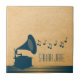 Quirkes und Vintages Gramophone Tile in dunkelblau mit einer Silhouette eines altmodischen Grammophons und einer Kaskade musikalischer Noten auf einem digitalen, kunstvoll gerenderten Papierhintergrund. Diese schicke, dekorative Kachel verleiht jedem Dekor Vintagen Flair und ist perfekt für alle Musikliebhaber geeignet. Einfach anzupassen, einfach mit dem Text Ihrer Wahl personalisieren. Klicken Sie auf den Button "Anpassen", um weitere Personalisierungsoptionen zu finden.