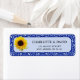 Dieses klassisch elegante Hochzeitsrückadressen-Label zeichnet sich durch ein gelbes Sonnenblumendesign auf blauem Vintagem Muster aus. Dieses passende Rücksendelabel ist Teil einer Hochzeitssuite, die sich ideal für einen romantischen Sommer oder eine romantische Hochzeit im Herbst eignet.