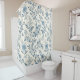 A detailed vintage floral illustration in blue tones, featuring delicately drawn branches, leaves, and blossoms on a light background, creating a classic and elegant botanical look. Toile-de-Jouy
