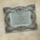 An aged blue Vintage look design with text fields for you wedding information. Customize your own Marriage certificate by filling in your information in the easy template.