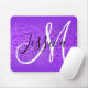 Erstellen Sie Ihre eigene elegante hellblaue violette Klangkante und Imitate lila Glitzer mit Monogramm Mauspad. Passen Sie das personalisierte Schwarzweiß-Monogramm an... einschließlich Schriftart-Farben, Kalligrafiestyles und Größen. Die Gradientengrafik ist eine nahtlose Kachel mit Ober- und Oben... verlasse das Zentrum frei, einen Hintergrund wie dieses Foto violetten Glitzer zu zeigen.