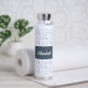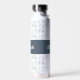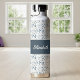 Serene watercolor botanical blue leaves pattern water bottle featuring a customizable name, to complement your style in the yoga studio and beyond. Personalize with your name or that of a loved one.