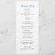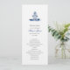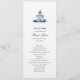 Programme de mariage simple et élégant avec aquarelle illustration d'une église bleue et blanche.