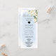 Kombinieren Sie Eleganz und Funktion mit der Platzkarte Blue Watercolor und White Rose Wedding Program. Die Vorderseite ist mit einem weichen, blauen Aquarell und zarten weißen Blumen gestaltet und dient als Namenskarte für Ihre Gäste, während der Rücken Ihre Hochzeitsfeier oder wichtige Ereignisse hervorhebt. Eine perfekte Möglichkeit, um die Gäste informiert behalten und eine koordinierte Touch zu Ihrem Tischdekor hinzuzufügen.