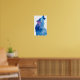 Blue watercolor wolf howling poster