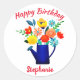 Blue Watering Pot Yellow Red Blume Happy Birthday Runder Aufkleber