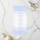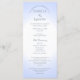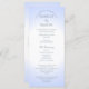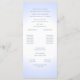 Elegante blaue Hochzeitskarte ist auf zwei Seiten mit Zeremonie Details auf der Vorder- und Hochzeitsfeier Teilnehmer auf der Rückseite.