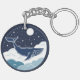 Illustration en gros d'une baleine bleue flottant au-dessus des nuages sous un ciel bleu.