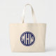 Blue White 3 Initial in einem Circle Monogram DIY Jumbo Stoffbeutel