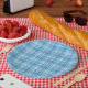 Blue White Checker Abstract Pattern Paper Plates