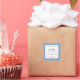 Maßgeschneiderte Seife-, Kerzen- oder Handwerksbeschriftungen mit einem hübschen Drehbuch auf Imitaten Delft florale Fliesenkunst retuschiert und reproduziert aus einer echten antiken Kachel. Es hat ein handgemaltes Ambiente und ist mit einem klassisch blauen und weißen Blumenmuster mit Kornblumen gestaltet.