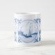 Hübsche Vintage Blau-Weiß Delft Kunst eines Segelbootes auf dem Wasser im Hafen, umgeben von Blumenelementen. Diese Kunst wird aus einer antiken handbemalten Fliese reproduziert. Klicken Sie auf Anpassen, um Ihren Namen oder Ihre Nachricht hinzuzufügen, die Hintergrundfarben zu ändern und Ihr Design für später retten.