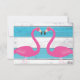 Blue & White Flamingo Wedding RSVP Karte