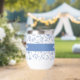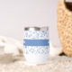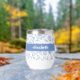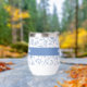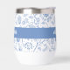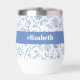 Add a sense of style to your day with this playful, elegant, simple custom name stemless wine tumbler. Light dusty French country blue boho block print flower and leaf pattern overlays a white background. In addition, bold modern typography overlays a dusty blue panel. Personalize with your name. This double-walled insulated tumbler helps retain your drinks soothingly hot or refreshingly cold. Makes a chic and modern statement whenever you use it. Makes a great gift as well!