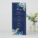 Elegante Rosen in Blau und Weiß schmücken dieses wunderschöne Abend-Dinner-Menü für eine Winterhochzeit. Die schicke Seite ist mit hübschen indigofarbenen Blume und einem zauberhaften, hellgelben botanischen Kragen versehen. Fügen Sie Ihre Kurs- und Dessertliste in weißer Schrift für Ihre Gäste hinzu.
