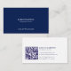 Die elegante, einfache und minimalistische Visitenkarte des Immigrationsanwalts zeichnet sich durch personalisierte blau-weiße Typografie auf dunkelblau-weißem Hintergrund aus. QR-Code.