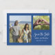 Marseille Blue ist eine trendige Farbe für dieses Jahr ... es wird wunderschön aussehen mit einfachen Kleinigkeiten von Babyatmen oder als Ergänzung zu einem bunten Bouquet Ihrer Lieblings-Blume. Diese minimale Save the Date Karte mit QR-Code macht es den Gästen leicht, die Details für Ihren besonderen Tag zu bekommen.