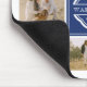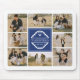 Foto Collage Maus-Pad gedruckt mit einem einfachen und eleganten Monogramm mit Ihrem Initial, Familiennamen und das Jahr in Weiß gegen Blau etabliert.