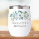 Fröhliche Blume aus weißer Torte und grüne Aquarellfarben bilden einen wunderschönen Rahmen an einem hübschen personalisierten blühenden Frühlingswein für Ihren schicken Garten Empfang. Passen Sie mit Ihren Namen unter dem schönen Bouquet für einen süßen Sake.