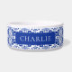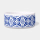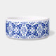 Blue White Tile Pattern Elegant Personalized Pet Bowl.