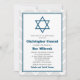 Blauer, weißer, grauer, traditioneller Bar Mitzvah-Einladung. Traditioneller und moderner blauer, weißer und grauer Doppelrand und Star of David Bar Mitzvah Einladung mit feinem Serif Schriftart. Diese blaue Bar Mitzvah-Einladung ist leicht mit Ihrer eigenen Formulierung personalisiert. Der Hintergrund hinter dem Rahmen ist ein subtiler Zickzackstreifen oder Zickzack Muster in Grau und Weiß. Ein klassisches Muster gepaart mit männlichen Farben und traditionellem Stil und Text.