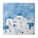 Eine wunderschöne Aquarellillustrierung der Landschaft und Architektur Santorins Griechenland. Ein blau-weiß-griechisches Design mit einem schönen Blick auf die griechischen Inseln. Ein perfektes Design für alle, die Lieben zu reisen, Urlaub und Lieben zu besuchen mediterrane Destinationen wie Oia und Fira von Santorini, Griechenland.