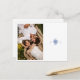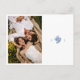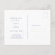 Chic mit jugendlicher Eleganz. Diese staubige, blau-weiße, flache Hochzeit spart das Datum der Postkarte einen frischen, modernen und jugendlichen Ton. Auf der Vorderseite der Karte befindet sich ein zeitgenössisches Set von Schriftart in staubblauen und eleganten blumengeschmückten Paar Monogramm und Foto, vor einem knusprigen, weißen Hintergrund. Die Details werden auf der Rückseite mit optionalem Rand und zusätzlichem Text wiederholt.