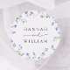 Romantischer Blumenaufkleber mit zartem Aquarellblau-Blumenrahmen und elegantem Monogramm. Das weiche botanische Design umrahmt die Namen des Paares wunderschön und schafft einen zeitlosen und raffinierten Look. Ideal für Gartenhochzeiten, Frühjahrsfeiern oder jede Veranstaltung mit einem blumengeschmückten oder rustikalen Thema.