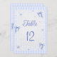 Blue Wildflower Floral Bow Gingham Table Number. Matching items available.