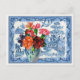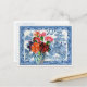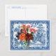 Farbenfrohe Blume in einer Vase werden vor einem traditionellen blauen Weidendesign gestellt. Die blauen Muster der Vase spiegeln die Farben und den Stil der inspirierten asiatischen Kulisse wider. Die hellen Blume wirken zeitgenössisch, obwohl sie auf einer antiken, Viktorianischen Visitenkarte gedruckt wurden. Dieses schöne Bild kann Einladungen, Ankündigungen und das Innere Ihrer Zuhause verzieren.
