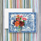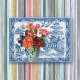 Farbenfrohe Blume in einer Vase werden vor einem traditionellen blauen Weidendesign gestellt. Die blauen Muster der Vase spiegeln die Farben und den Stil der inspirierten asiatischen Kulisse wider. Die hellen Blume wirken zeitgenössisch, obwohl sie auf einer antiken, Viktorianischen Visitenkarte gedruckt wurden. Dieses schöne Bild kann Einladungen, Ankündigungen und das Innere Ihrer Zuhause verzieren.