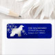 Dieses markante Rücksendeetikett zeichnet sich durch ein silbernes Hundeschild der Silhouette Afghanischer Hunde vor einem Spritzer verzierter Silberschneeflocken aus. Das Bild wird auf einem Gradienten tiefblauen Hintergrund platziert. Ihr eigener Text ist in Silber passend rechts neben dem Bild. Schön!