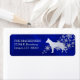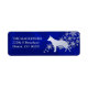 Dieses markante Rücksendeetikett zeichnet sich durch ein silbernes Silhouette australisches Rinderhundebild vor einem Spritzer verzierter Silberschneeflocken aus. Das Bild wird auf einem Gradienten tiefblauen Hintergrund platziert. Ihr eigener Text ist in passendem Silber am links Bild.