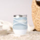 This fun wine tumbler has a winter watercolor pattern that features soft, wavy layers of blue and beige with a whimsical overlay of sparkling white snowfall. It's a perfect personalized gift, holiday decor and makes for a cozy Christmas. The subtle, modern style is ideal for those who love elegant seasonal designs.