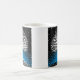Detaillierte Silhouette auf einem dunkelblauen Hintergrund. Schnee kommt sanft herunter. Das ist ein auffallendes Design für eine großartige Tasse Kaffee.