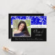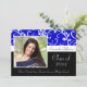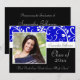 Graduation Einladung mit Foto und klassisch blau, schwarz und weiß Design mit Blume und fließenden Wirblen Weinreben. Niedlicher, schicker, delikater und feminininer Stil für Jung und Weibchen. Zeigen Sie Ihren persönlichen Stil mit diesem schönen Foto grad einladen. Toll als Abschluss Ankündigung oder Graduiertenparty Einladung.