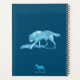 Ein stylisierter blauer Wolf (Canis lupus) wirft einen Schatten, wenn er durch schneebedecktes Gelände geht. Es gibt zwei Orte, an denen du deinen eigenen Text hinzufügen kannst.