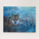 Blue Wolf is a wildlife painting that animal lovers will love in soft shades of blue and nature's hues with the wolf in a swirl of snow and winter trees in the background.