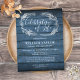 Une carte postale de célébration rustique de la vie de l'invitation à la mémoire avec une guirlande feuillue dessinée à la main sur un arrière - plan de panneaux de bois bleu. Conçu par Thisisnotme©
