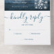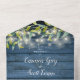 Alles in einer Hochzeitseinladung mit grünem Blattwerk, hübschen Saitenlichtern, Maurerkirschen, prächtigen Stilbezeichnungen und schicker Typografie auf blauem rustikalem Holzhintergrund. Die Einladung enthält eine perforierte RSVP-Karte, die für Sie individuell adressiert oder links als leere Adresse für die Handschrift der Adressdaten Ihres Gastes verwendet werden kann. Entwickelt von Thisisnotme©