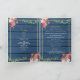 Ein wunderschönes Design mit marineblau-blauem Korngeflecht, Vintage Rose in Rosa- und Bordeaux-Farbtönen, das hängende Grün gerahmt mit einem eleganten Goldrahmen. Ein landschaftliches Begrüßungsprogramm mit floralen, rustikalen Holz, goldenen Akzenten ideal für jede thematische Hochzeit. Auch die passenden Hochzeitseinladungen und andere Schreibwaren sind verfügbar.