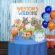 Blaues Wald Birthday Wasser Flaschen Etiketten - blau, orange, braun, Waldtiere, Fox, Hirsch, Zelt Clipart von Pixel Papier gedruckt