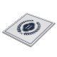 Navy blaues Kranz Wappen mit anpassbarem Monogramm und blauem Rand.