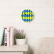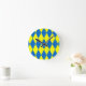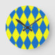 Blue Yellow Harlequin Checkered Design Runde Wanduhr
