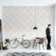Blue Yellow Mid-Century Abstract Cat Pattern Tapete